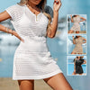 Vestido Mini de Crochet para Cubrir Trajes de Baño de Mujer con Escote en V