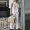 💝Venta por tiempo limitado 50% DE DESCUENTO - 👗Conjunto transpirable sencillo para mujer - Top sin mangas con cuello redondo y pantalón de pierna ancha